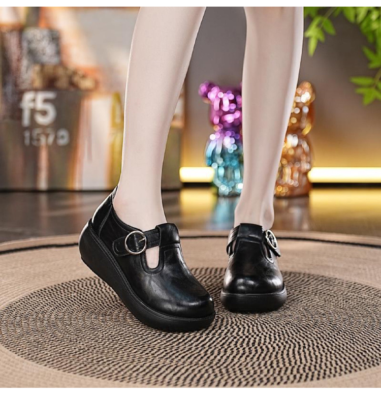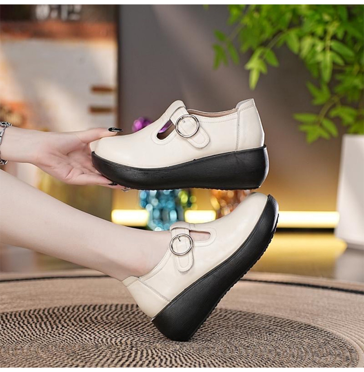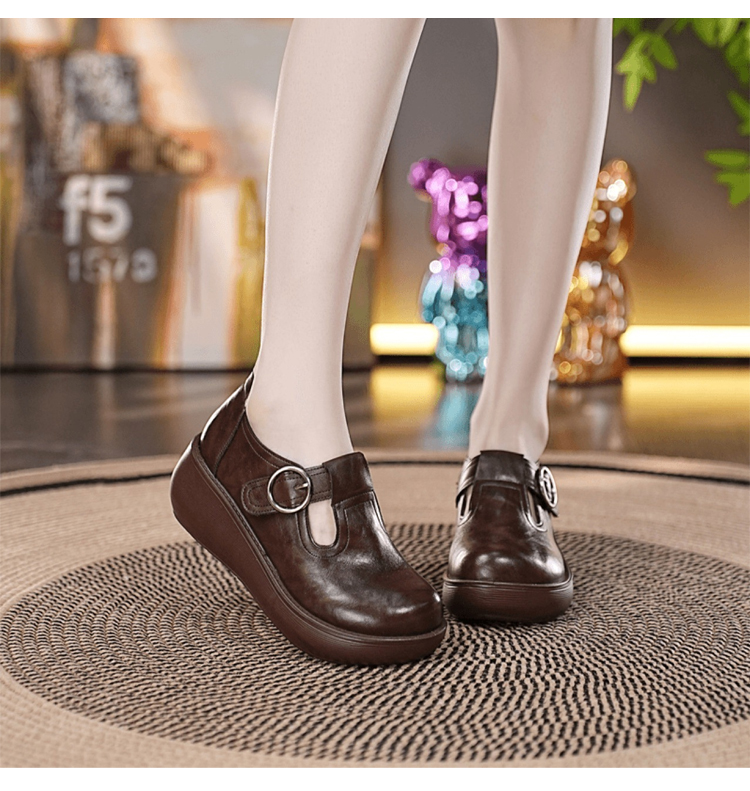 Healthy-foot حذاء معتق راقي جلدي بنعل سميك للنساء