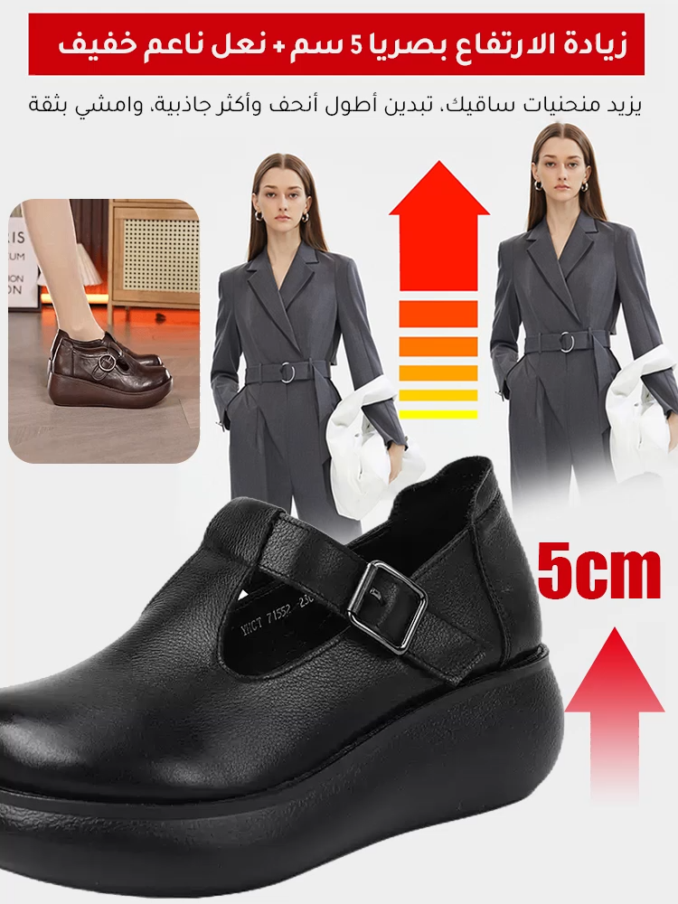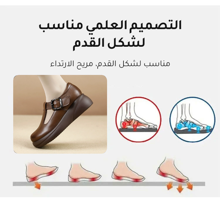 Healthy-foot(تصحيح وضعية المشي)حذاء MBT الفسيولوجي حذاء جلدي نسائي بكعب مائل بارتفاع 5 سنتيمتر، مع نعل سميك مضاد للانزلاق، يوفر دعمًا للقدم ويضمن الراحة في كل خطوة
