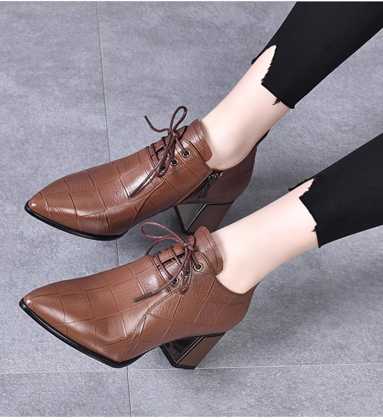 Healthy-foot حذاء راقي جلدي بكعب منخفض للنساء