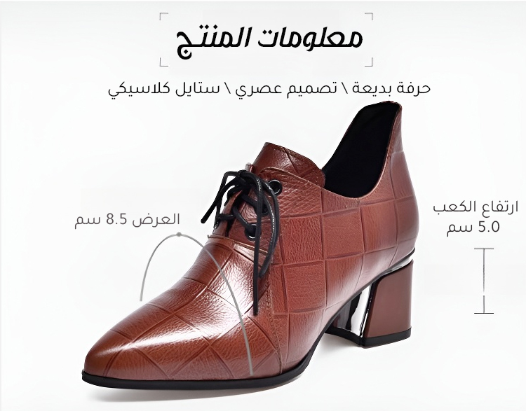 Healthy-foot حذاء نسائي فرنسي بكعب عالٍ من الجلد الناعم، بكعب متوسط ٥ سم، أنيق ومريح، سهل الارتداء والخلع، يُبرز جمال ساقيكِ. مثالي للتنقل أو العمل