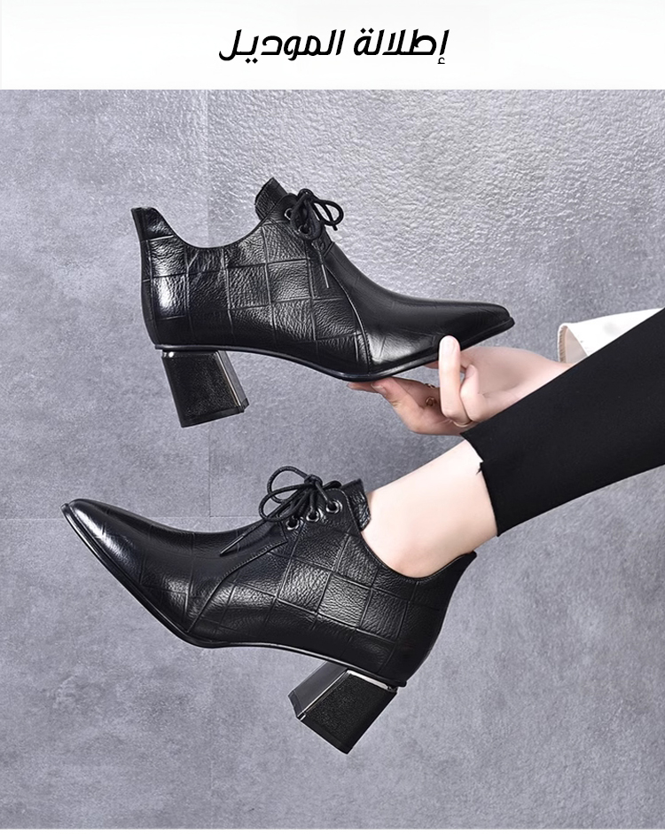 Healthy-foot حذاء كاحل نسائي عصري من الجلد الطبيعي، كعب عالي 6 سم، مقدمة مربعة معدنية، يطيل القدمين بصريًا ويجعلها أنحف، متعدد الاستخدامات وأنيق
