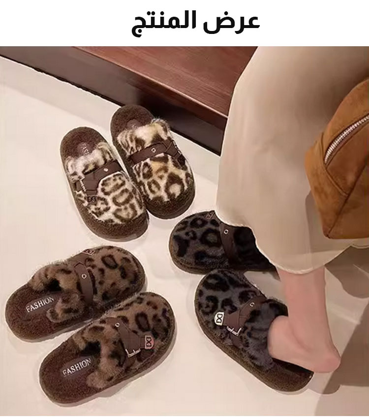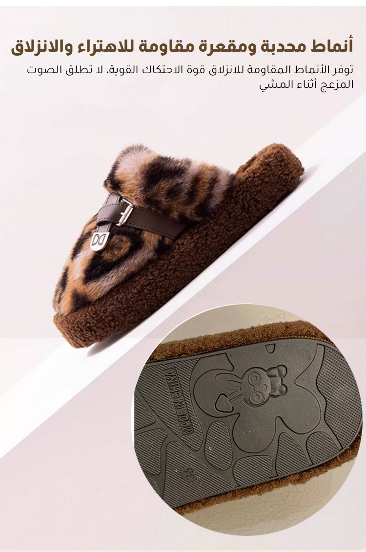 Healthy-foot نعال دافئة وأنيقة للسيدات بنقش النمر مثالية للخريف والشتاء تناسب الارتداء في المنزل والخارج بأناقة