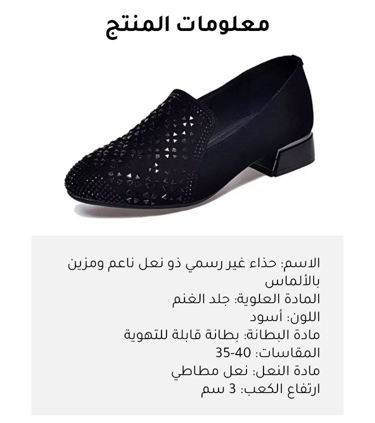 Healthy-foot حذاء كاجوال ناعم من الصوف مزخرف بالماس كعب منخفض 3 سم يطيل الساقين دون التأثير على المشي مريح ومستقر، مثالي للعمل اليومي أو الارتداء غير الرسمي