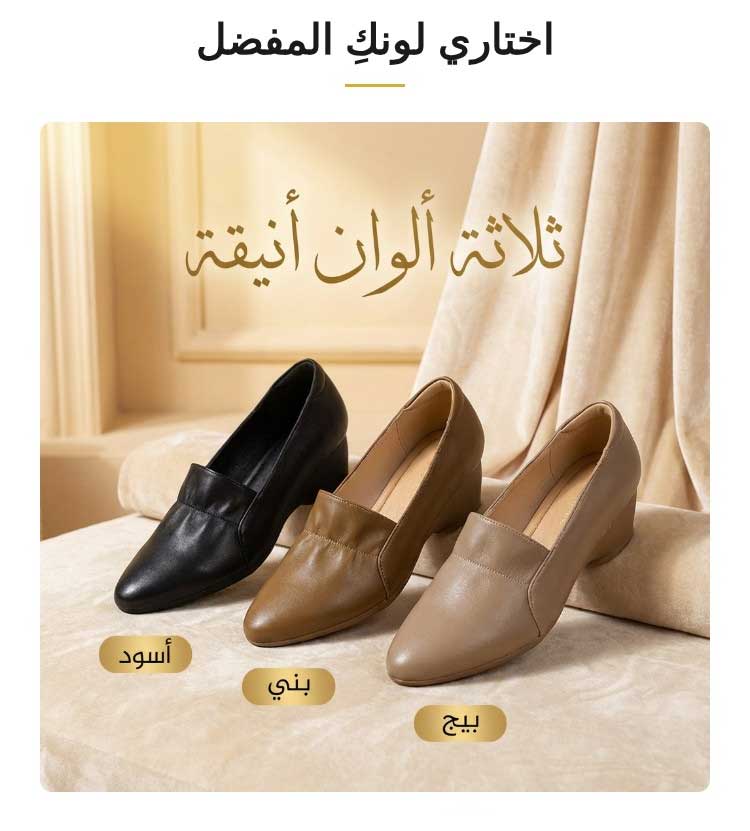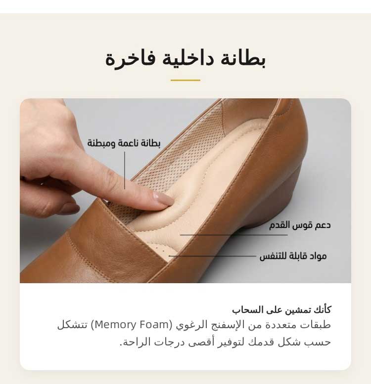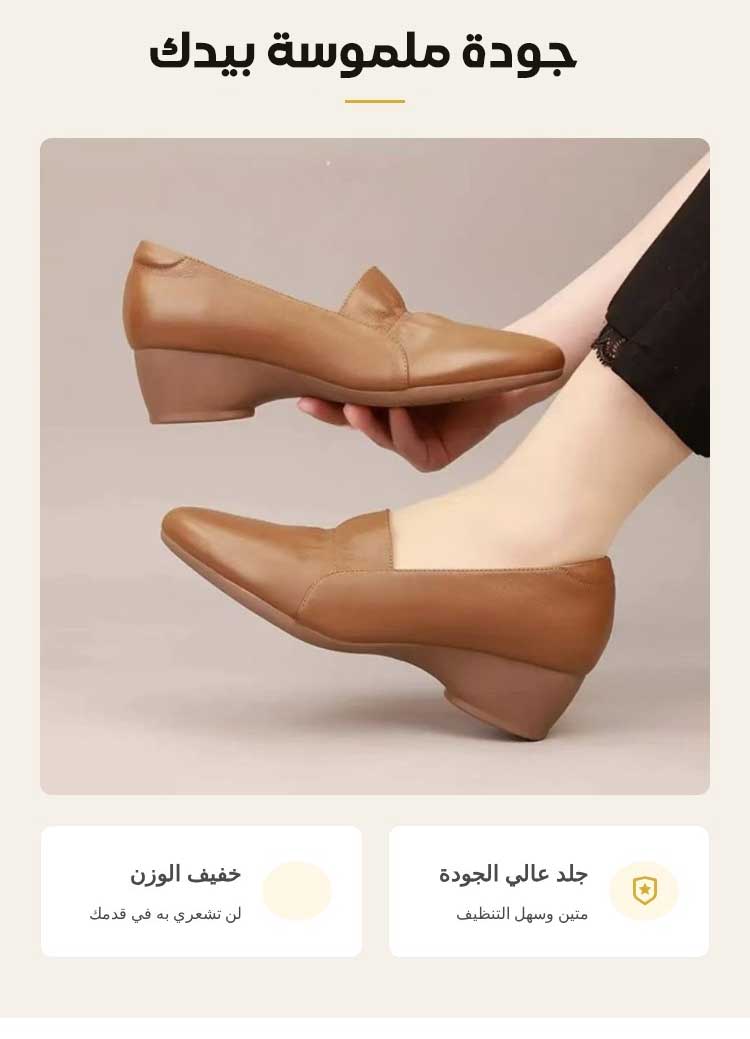 حذاء "الراحة المثالية" الطبي - جلد طبيعي بكعب ويدج مريح (5 سم) ✅ يقلل ضغط الركبة والظهر ✅ تصميم عريض للأقدام الممتلئة ✅ زيادة طول 5 سم بثبات تام ✅ جلد ناعم يسمح بالتنفس ✅ أكثر من 85,000 عميلة سعيدة