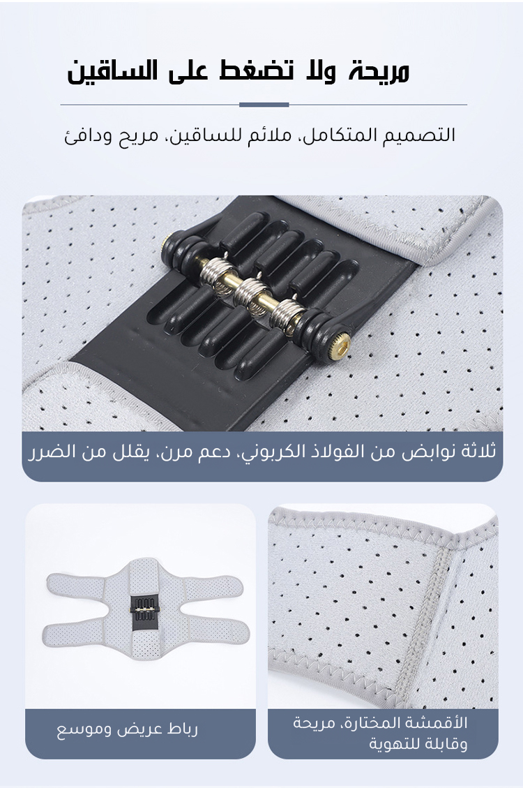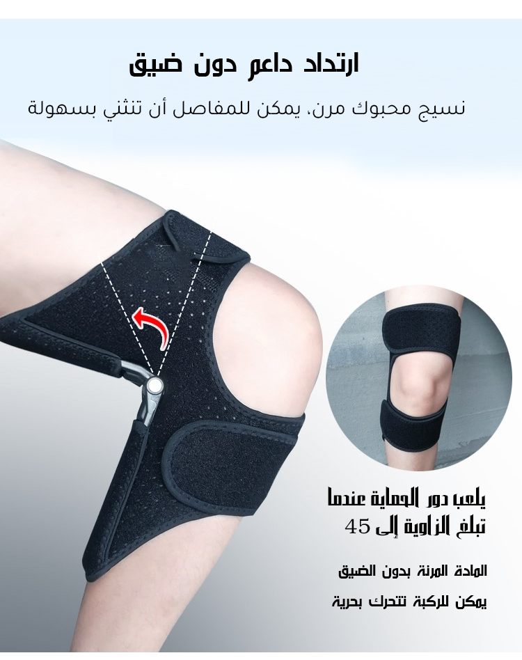 ● تصميم مريح يتناسب مع شكل الركبة ويوفر ثباتًا ممتازًا دون التسبب في أي إزعاج طوال اليوم، حتى مع الاستخدام المطوّل.