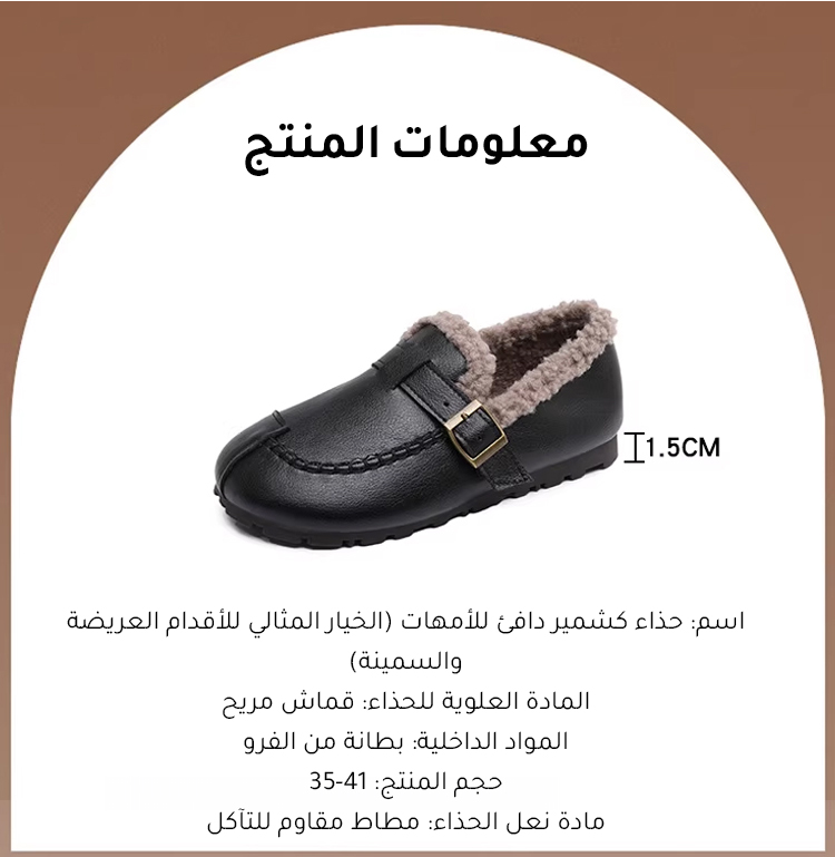 يتميز حذاء الكشمير الدافئ بتصميمه المثالي الذي يوفر راحة فائقة للأمهات ذوات الأقدام العريضة والسمينة، ويمنحهن شعوراً بالدفء طوال اليوم. مصنوع من خامات عالية الجودة من الكشمير الناعم، ليحافظ على حرارة القدمين في الشتاء ويوفر مرونة في الحركة دون أي ضغط أو ضيق. نعل الحذاء المريح والمضاد للانزلاق يضمن ثباتاً وأماناً أثناء المشي، مما يجعله الخيار الأفضل للاستخدام اليومي داخل وخارج المنزل. تصميم أنيق وعصري يناسب جميع الأعمار، ليمنح الأمهات إطلالة مميزة تجمع بين الراحة والجمال في كل مناسبة. |