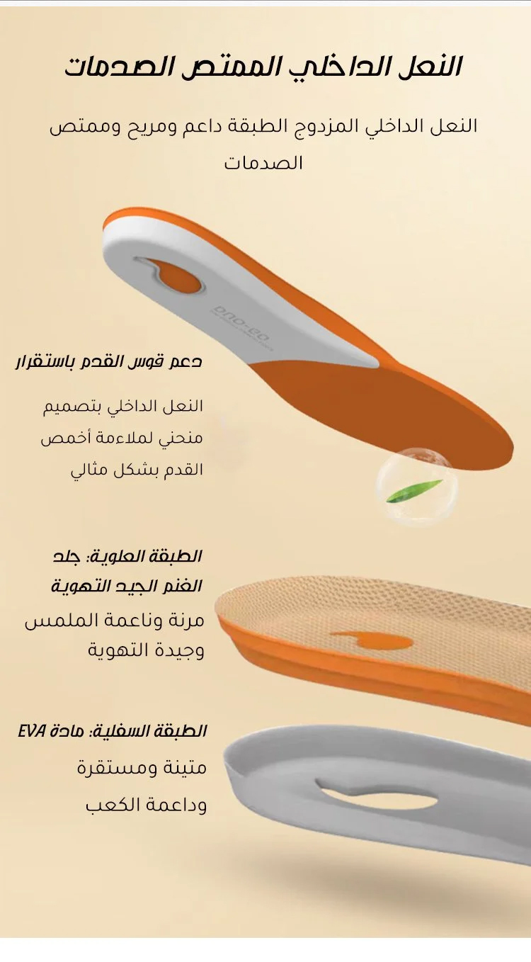 الجزء العلوي للحذاء: جلد ناعم + ثقوب مثقبة للتهوية، لطيف على البشرة ولا يسبب الإختناق النعل: قاع مطاطي مقاوم للتآكل، نقوش مضادة للانزلاق بقوة تماسك عالية قالب الحذاء: تصميم موسع، مناسب للنساء ذوات القدم العريضة في الشرق الأوسط |