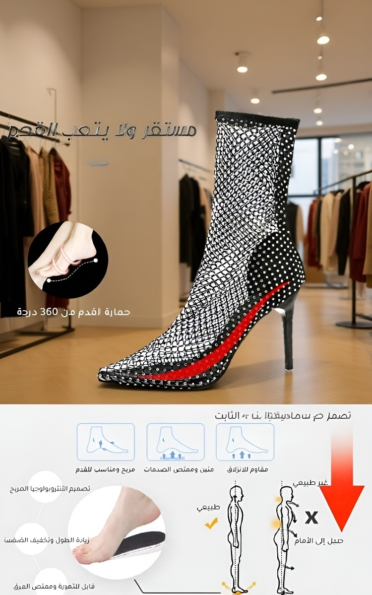 Healthy-foot حذاء أنيق بطول 6 سم مزين بأحجار الراين، يضفي على العباية مزيداً من الأناقة