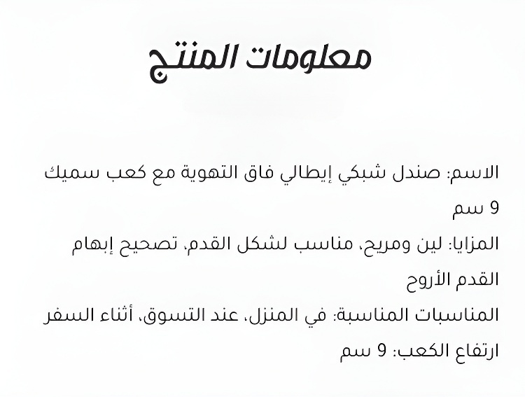 ● يوفر دعم مثالي للقدم بفضل النعل المريح، مما يجعله الخيار الأمثل للسيدات الباحثات عن الأناقة والعملية في آن واحد.