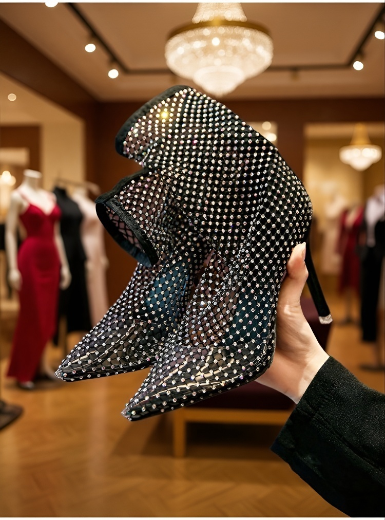 Healthy-foot حذاء كعب عالٍ بتصميم فرنسي بمقدمة مدببة، مرصع بالأحجار اللامعة بشكل فاخر، أناقة بسيطة، مثالي للعمل المكتبي أو الحفلات المسائية